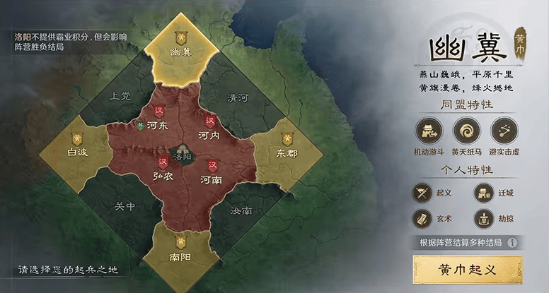 在游戏中,作为黄巾阵营的一员,玩家可以利用农民起义军在策略游戏玩法上的独特机制,以游击战术为核心,袭扰各地的汉室玩家和部队。黄巾军玩家可以单格布局主城、研发玄术科技实现瞬移奇袭,迁城的部分限制也被解除,可打可退,边打边退自由选择。而汉室阵营则可以依仗城池和烽火台,与己方阵营的盟友们组织快速的协同防御,坚守阵地保卫洛阳,挫灭来袭的敌人后再一举剿灭他们。