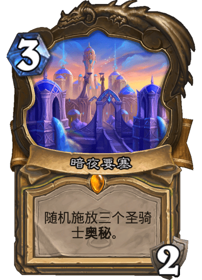 苟活手段比元气骑更丰富一点。又比如说你可以拿两次地标,有一个地标是两次战吼,如果没有元气 弹思路的话,可以配合血誓打斩杀,血誓最后有28滴血的斩杀线,如果空宇在手上且无法洗下去的话,也可以给萨维斯,多一次定向检索,或者是奥秘地标,可以出古神在上等奥秘,让对面得一个个测,拖慢对面节奏,假设面对号角骑,你点出了奥秘地标,对面下十字军远征就可能被古神在上恶心到,又或者自己缺过牌,那就可以抽牌交互法力消耗。又比如说可以拿复制嘲讽对抗快攻,或者拿洛丹伦,下洛丹伦加488解杂毛怪也可以,缺斩杀也可以用冲锋