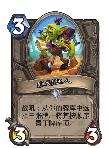 所以他的构筑思路其实就是排序。所有的卡都是为了排序还有减费,比如规划狂人就是规划排序,它的探底随从就是为了知道牌库底是什么。
