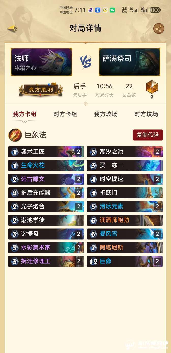 如题,根据环境调整卡牌 不同分段可以稍微调整使用取舍 dk多建议带上熊猫 萨满术士多就用这套 打铺场蛋猎劣势 法师内战尽量不下3血怪如果对面也没怪战场可以自己解自己 海啸内战挺好使 8费巨像很关键 我没带熊猫 如果不能连拍两巨像叫杀 不要下巨像让对面滑冰(就算对面大滑加小滑依然可以斩杀)或者可以一回合配合地标双巨像打死 打术士就炸开炮地标 打萨满02.01嘲讽看情况不着急解 复制mmr再光环减费就都是0费巨像注意顺序 不要伏笔 玩下来感觉法师强度是有但总差点味道 也有可能是还没开发完全吧 不是很喜欢玩法师的不建议用 上分不快
