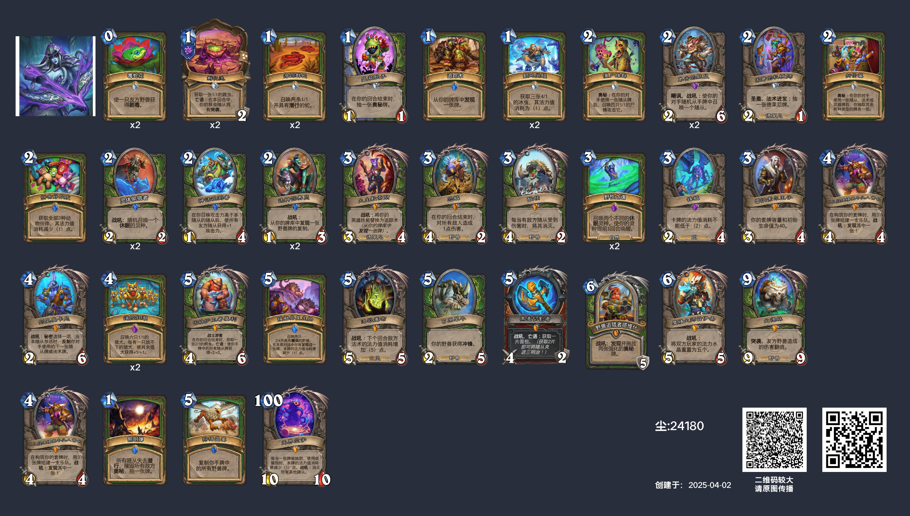 来自白芝的中速猎,他使用这套卡组在月榜划水,我使用这套卡组以24-5打进了月榜。