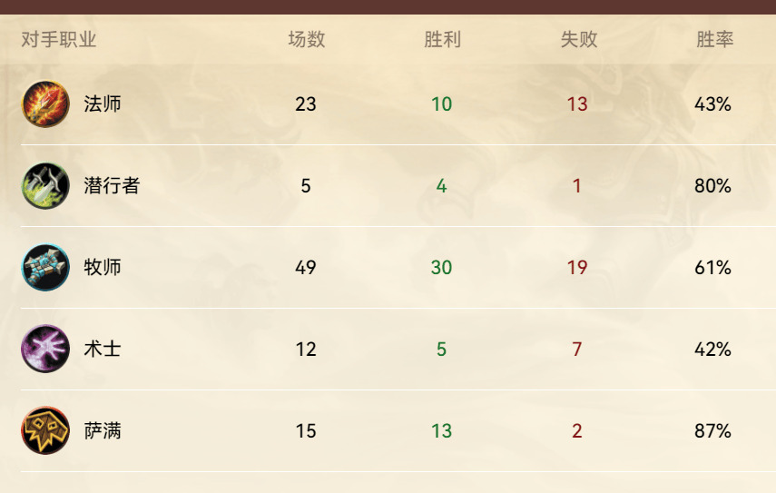 面对猎人卡组,样本数据比较少,不做参考,基本都是本抢血+照明弹整死的