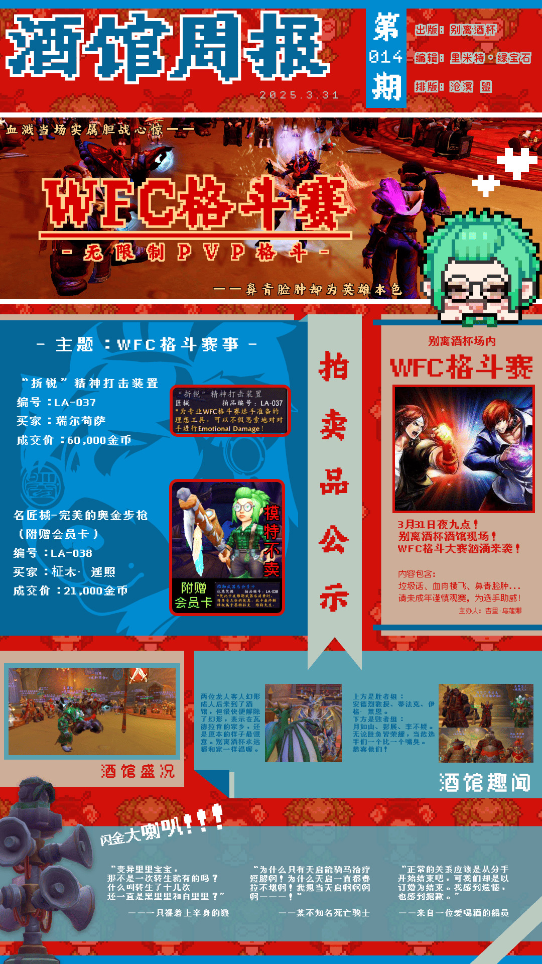 请先阅读本周周报吧!本周拍卖会主题是“WFC格斗赛事”!