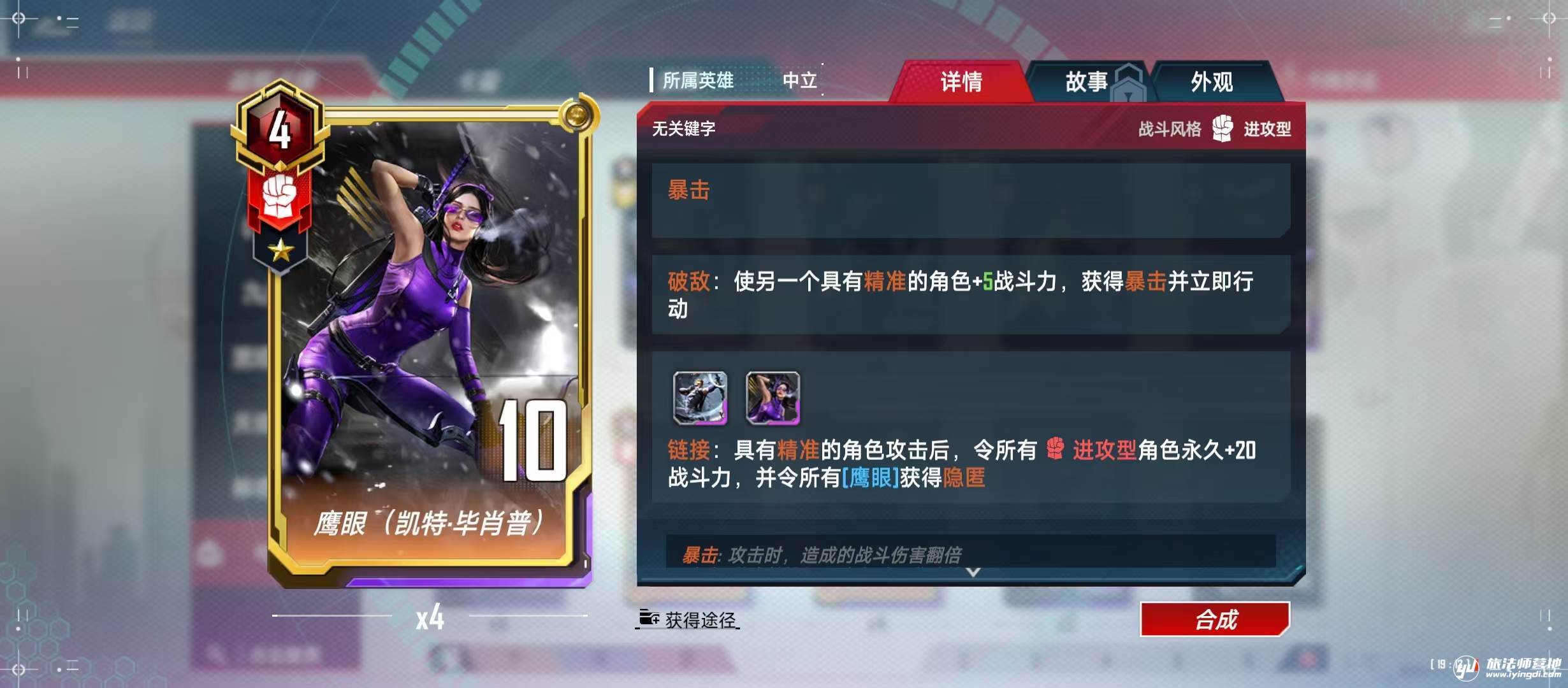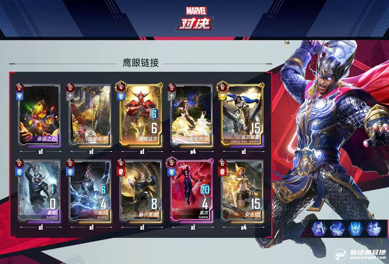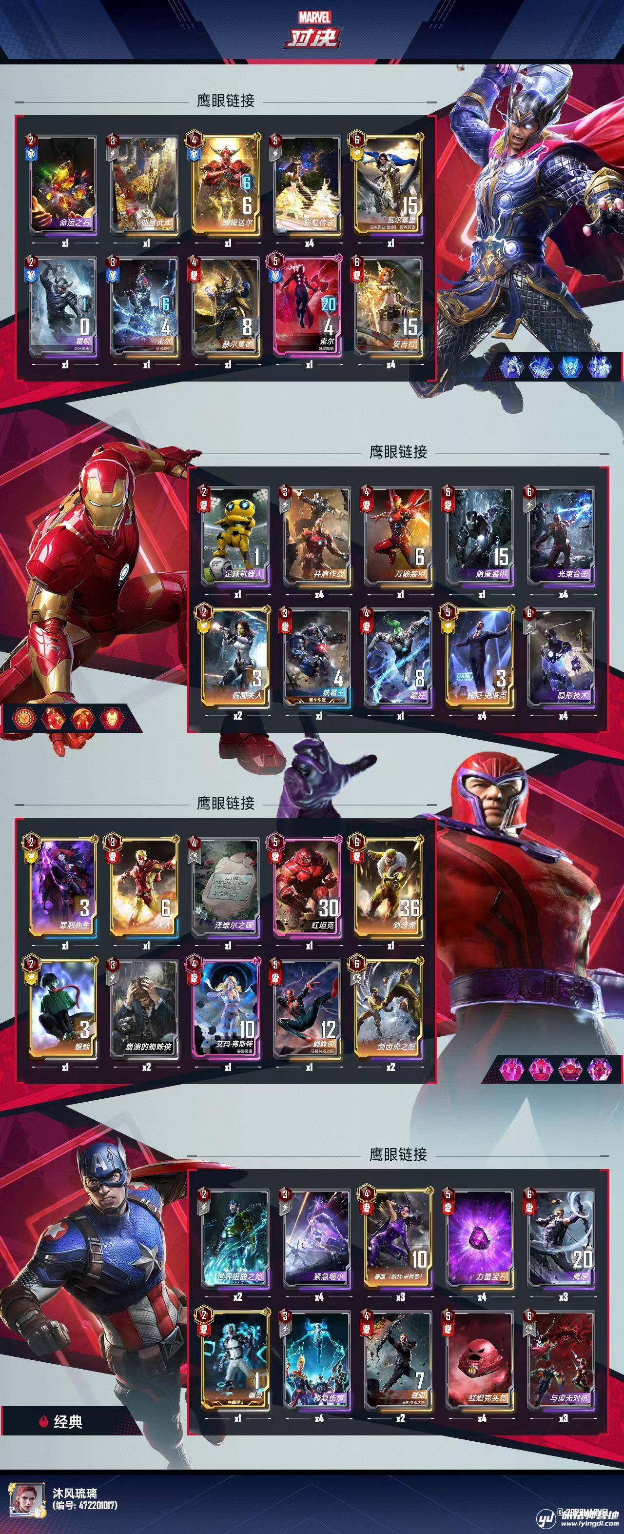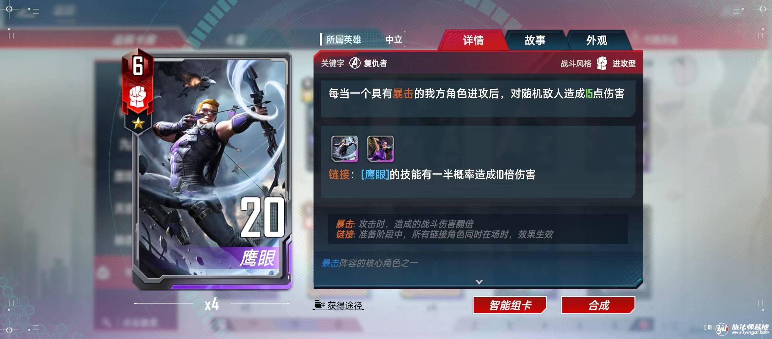 四费:小鹰眼,核心卡,最终阵容需要2+1小鹰眼所以带三张即可,消退鹰眼,配合崩溃的蜘蛛侠快速凑齐链接