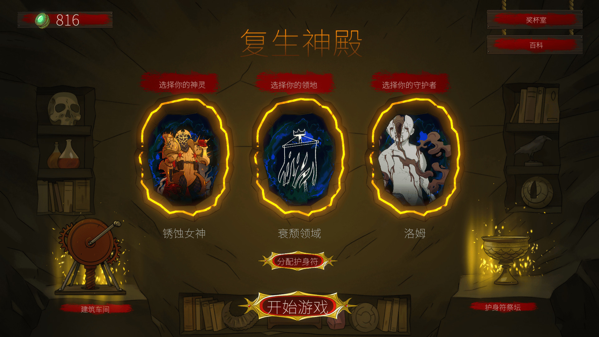 游戏以暗红与幽绿为主色调,勾勒出地牢的污秽与神庭的诡谲。邪神形象设计极具冲击力——若肮被描述为“尸体与老鼠的肮脏聚合体”,其皮肤因病原体而不断抽搐;锈蚀女神的熔炉工具则像“暴脾气建筑师的泄愤之作”。配乐以工业噪音混合宗教吟诵,进一步强化了压迫感。