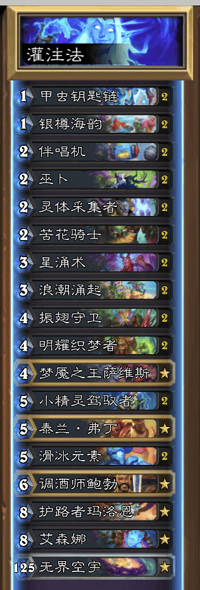 2)萨维斯:稳定过随从加buff,根据局势找嘲讽/战吼/复生,双战吼的艾森娜、玛洛恩、鲍勃、驾驭者(5费灌注随从)都是不错的选择;