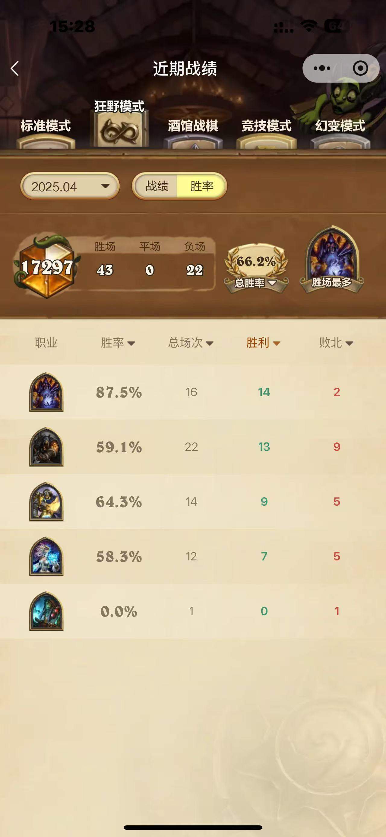 中途输了一把灌注法和号角骑,在这个分段除了这两个卡组剩下遇到的更多是30暗牧和新出现的变种天启骑,这些卡组对于宇宙术来说没有大劣对局基本均开或者小优,所以与其说是上分卡组不如说这一套是环境卡组。