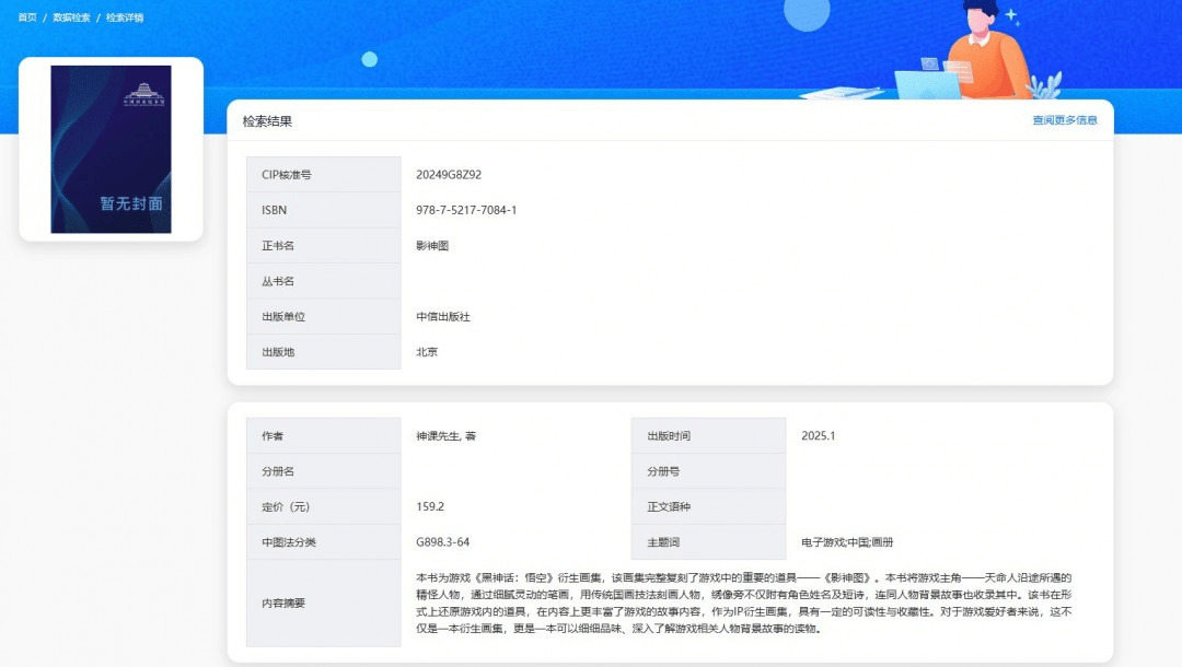 本书将游戏主角——天命人沿途所遇的精怪人物,通过细腻灵动的笔画,用传统国画技法刻画人物,绣像旁不仅附有角色姓名及短诗,连同人物背景故事也收录其中。该书在形式上还原游戏内的道具,在内容上更丰富了游戏的故事内容,作为IP衍生画集,具有一定的可读性与收藏性。