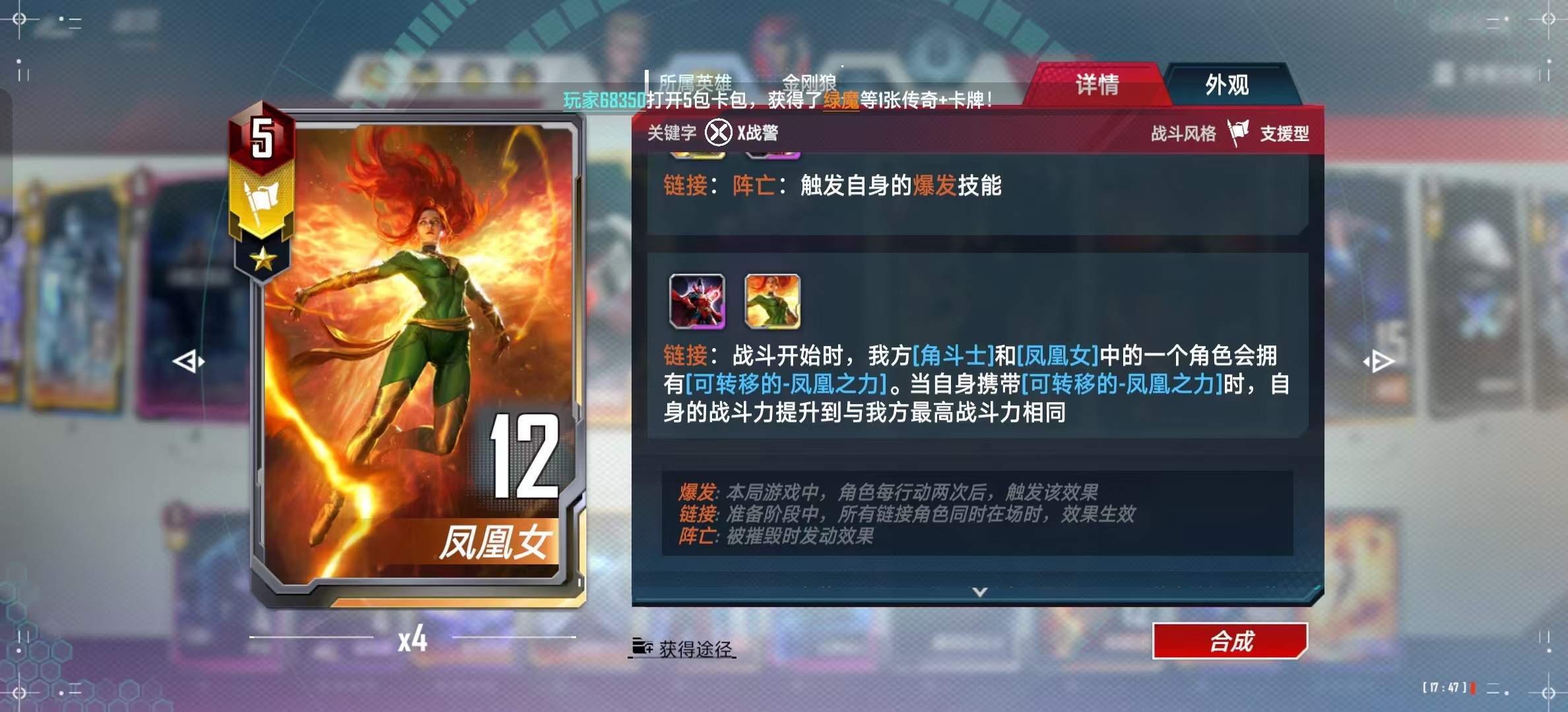 1、凤凰角斗士链接,本卡组核心输出,建议全开