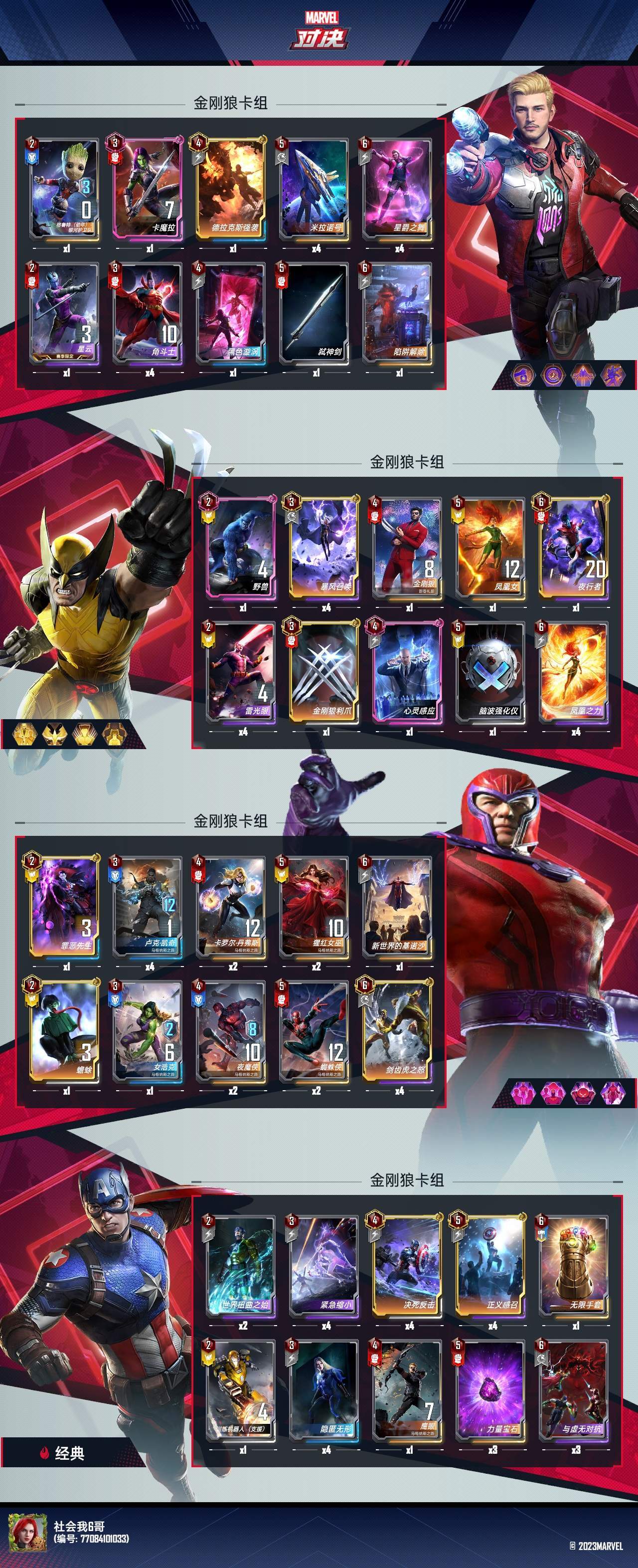 1、消退蜘蛛侠,配合养大夜魔侠,每回合都有成长,中期还可以直接消退空格子上怪,1-2张即可,4张有点贵,后期格子也不够上消退怪了