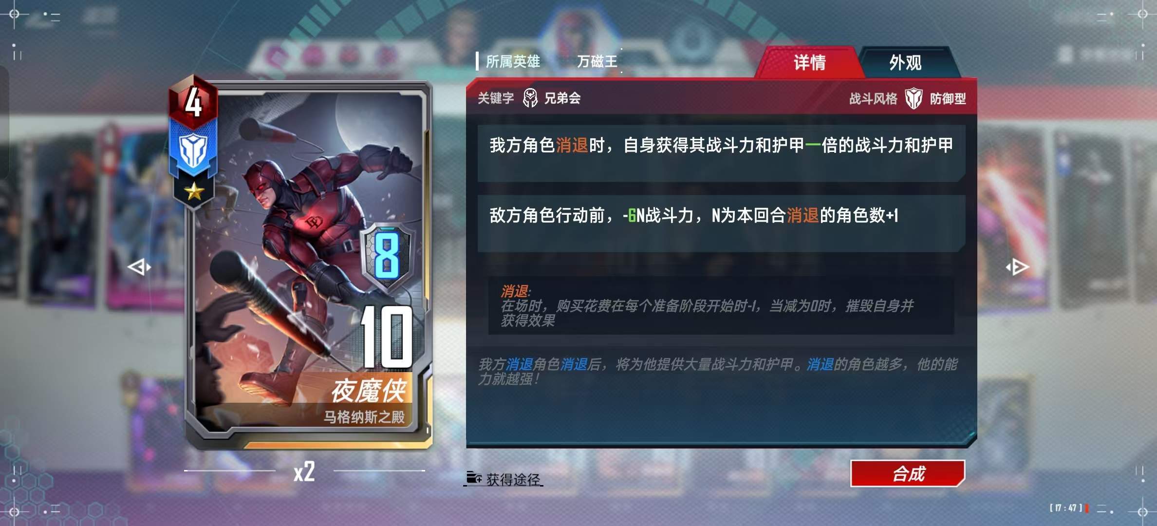 2、消退惊队,快速检索消退卡,保证夜魔侠有养料