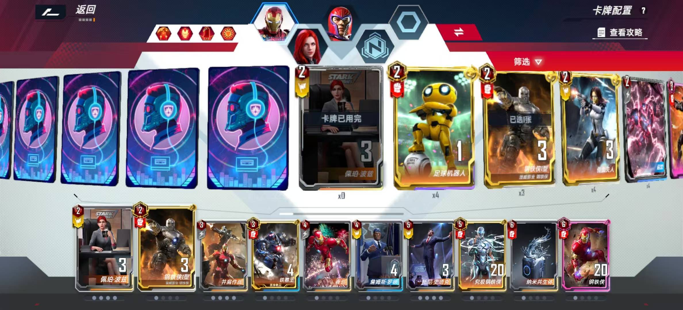 - 【究极钢铁侠】很多人分不清五费钢铁侠辅助卡应该带什么,通常会带【便携箱】,对于速五的卡组而言,【究极钢铁侠】这张卡位十分强大,单卡24战力,buff全场20战力,相当于五块经济获得44战力,五回合打出或许不明显,四回合打出就是致胜点。而且配合【托尼链接】卖出相当于免费过度,十分好用。