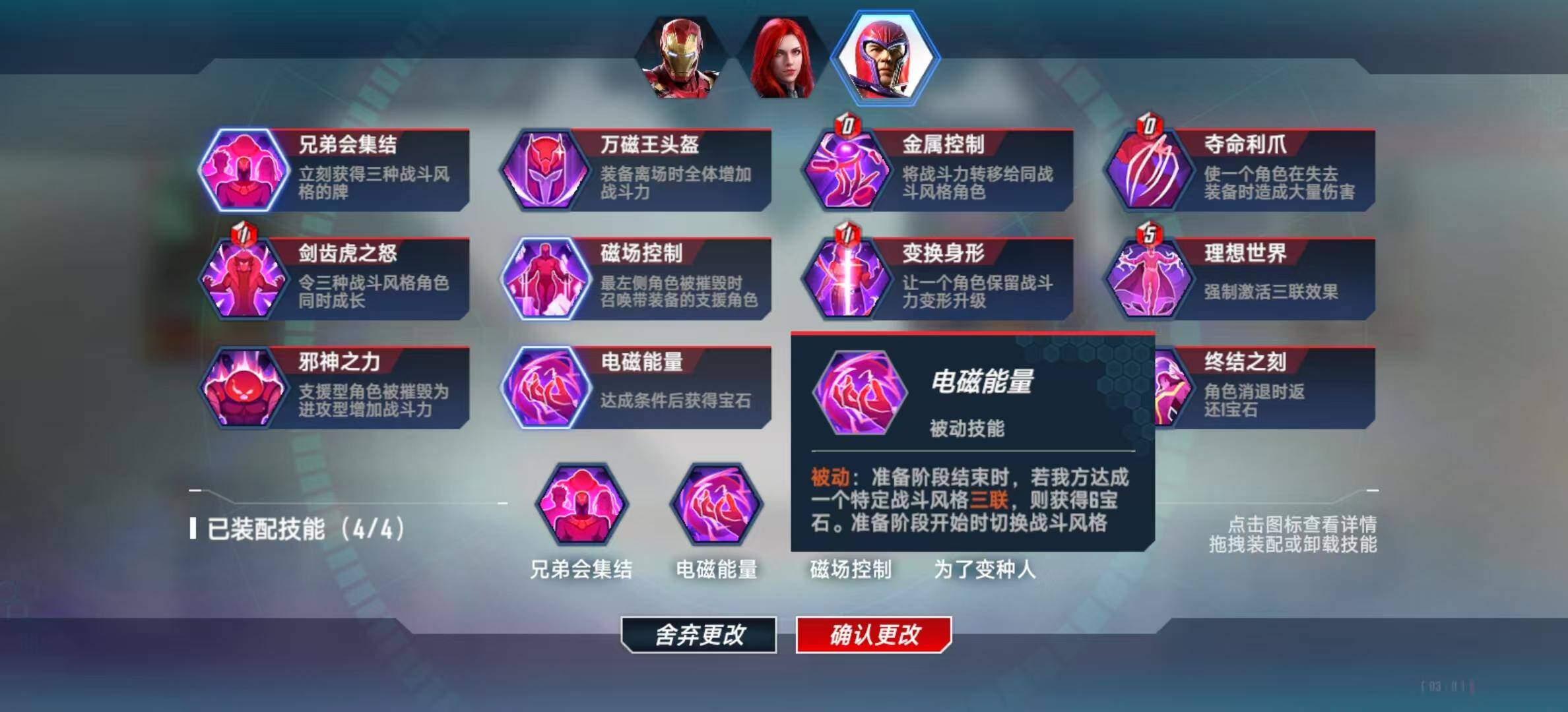 好,说了好用的,就说说这个不好用的。这个技能应该被暗改了,触发“三联”条件是指必须要有相应的“三联技能”被触发。比如【罪恶先生】触发的三红,才算触发,单纯三红不触发。可替换新技能【终结之刻】,也算不好用的,因为中期不会消退,后期经济还行。但中期稳不住,何谈后期呢?比较推荐的是【磁场控制】,稳血有奇迹。