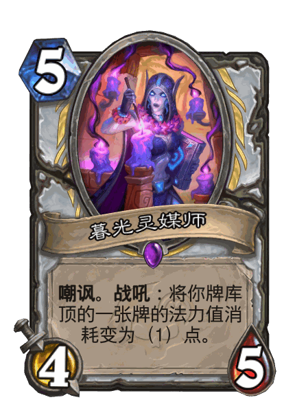 再用暮光灵媒师把牌库顶的艾维娜变成1费,然后用地标或者交易抽上来(血法师也可以)。
