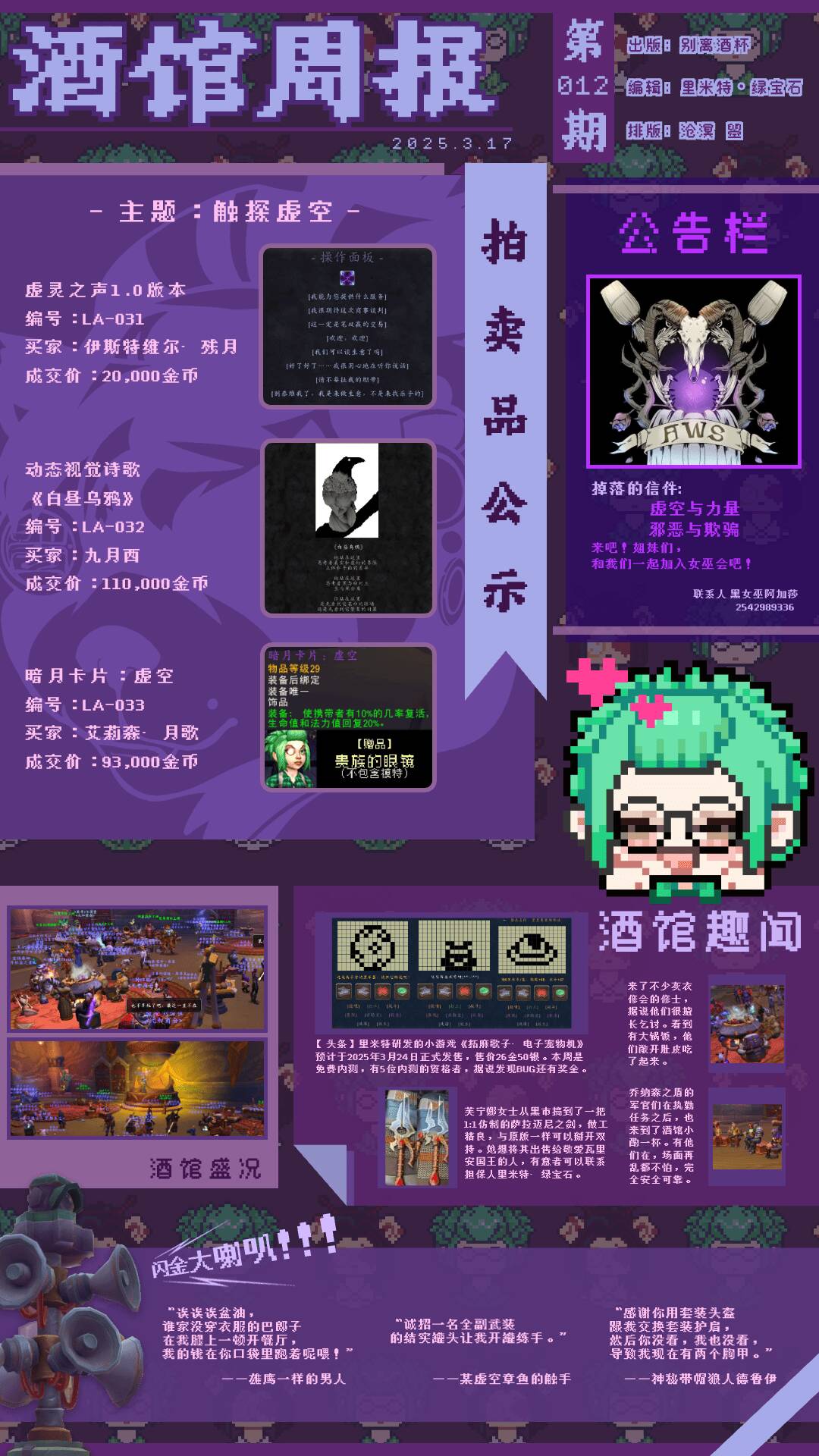 请先阅读本周周报吧,本周拍卖会主题是“触探虚空”!周报也进行了改版重置,内容更丰富了!