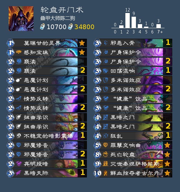 不稳定的暗影震爆,回荡混响,邪恶入骨,用来处理3费回合可能出现的4血大怪,这套卡组不容易处理3费回合出现的4血大怪。