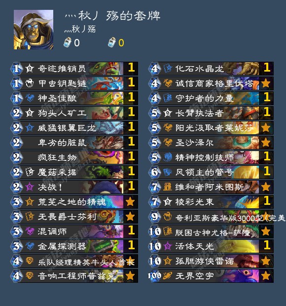 诸神黄昏的一周怎么能没有宇宙卡组的身影呢。既然宇宙战,宇宙牧抗不起来那就试试宇宙骑吧。
