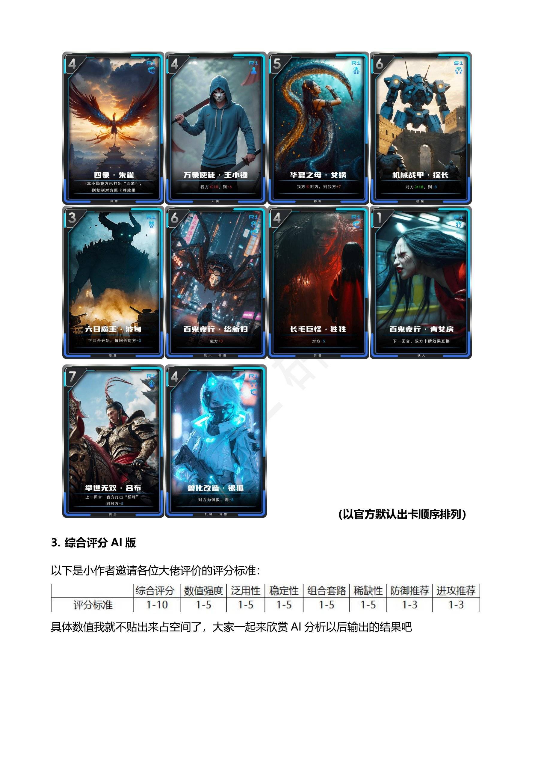 (以官方默认出卡顺序排列)