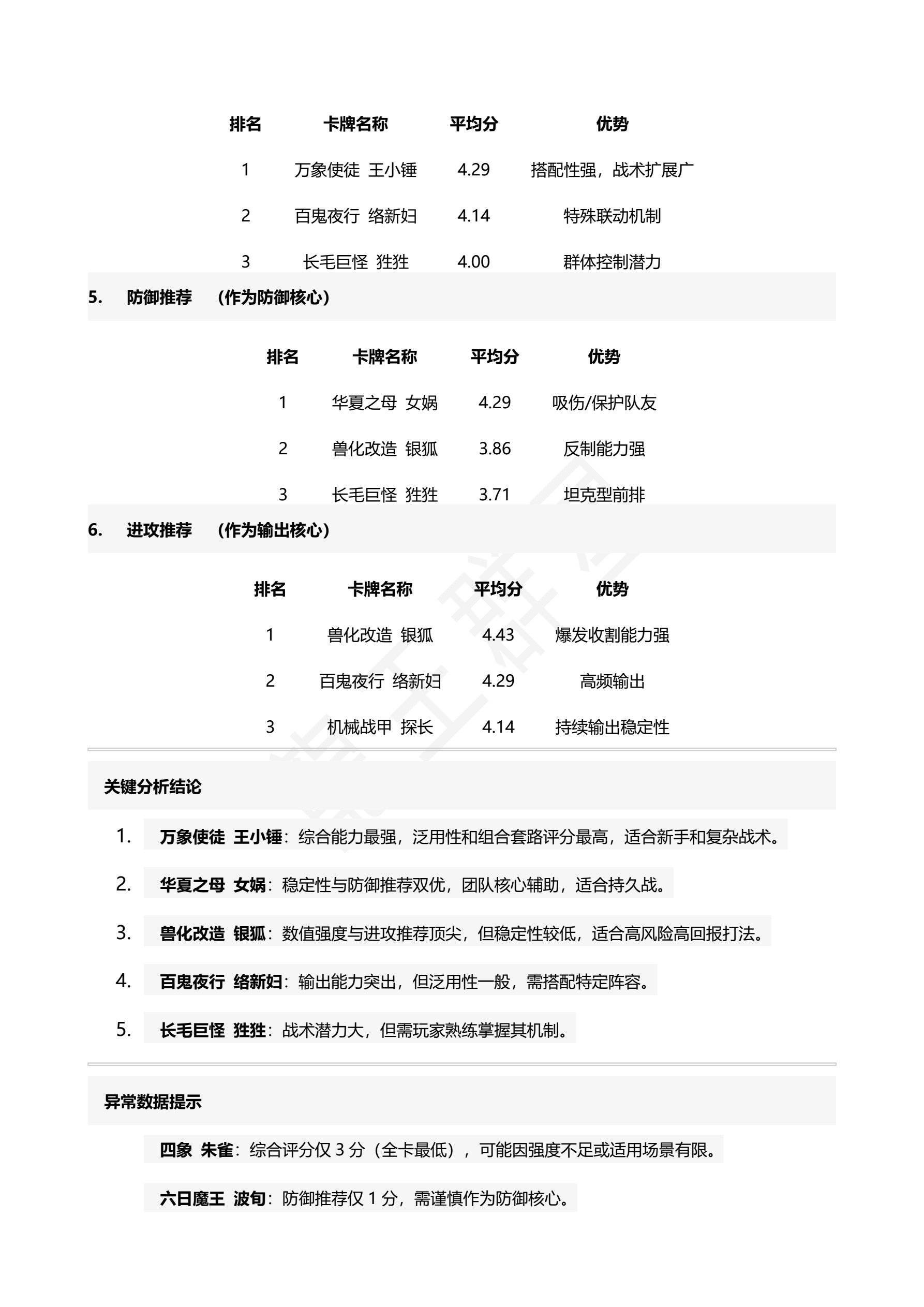 群体护盾效果显著,但需注意保护自身。 - 最佳进攻卡:万象使徒 王小锤(2.29)