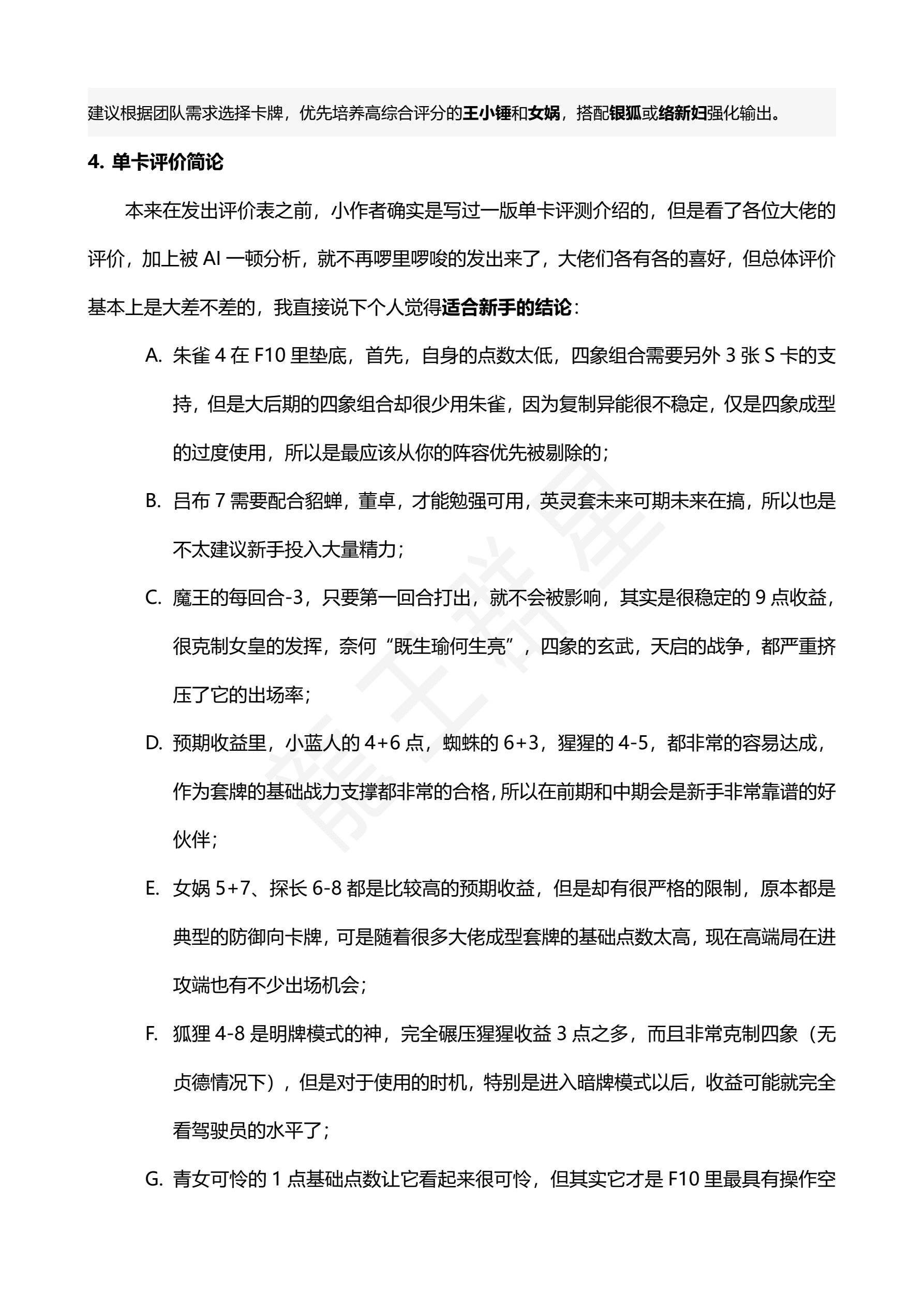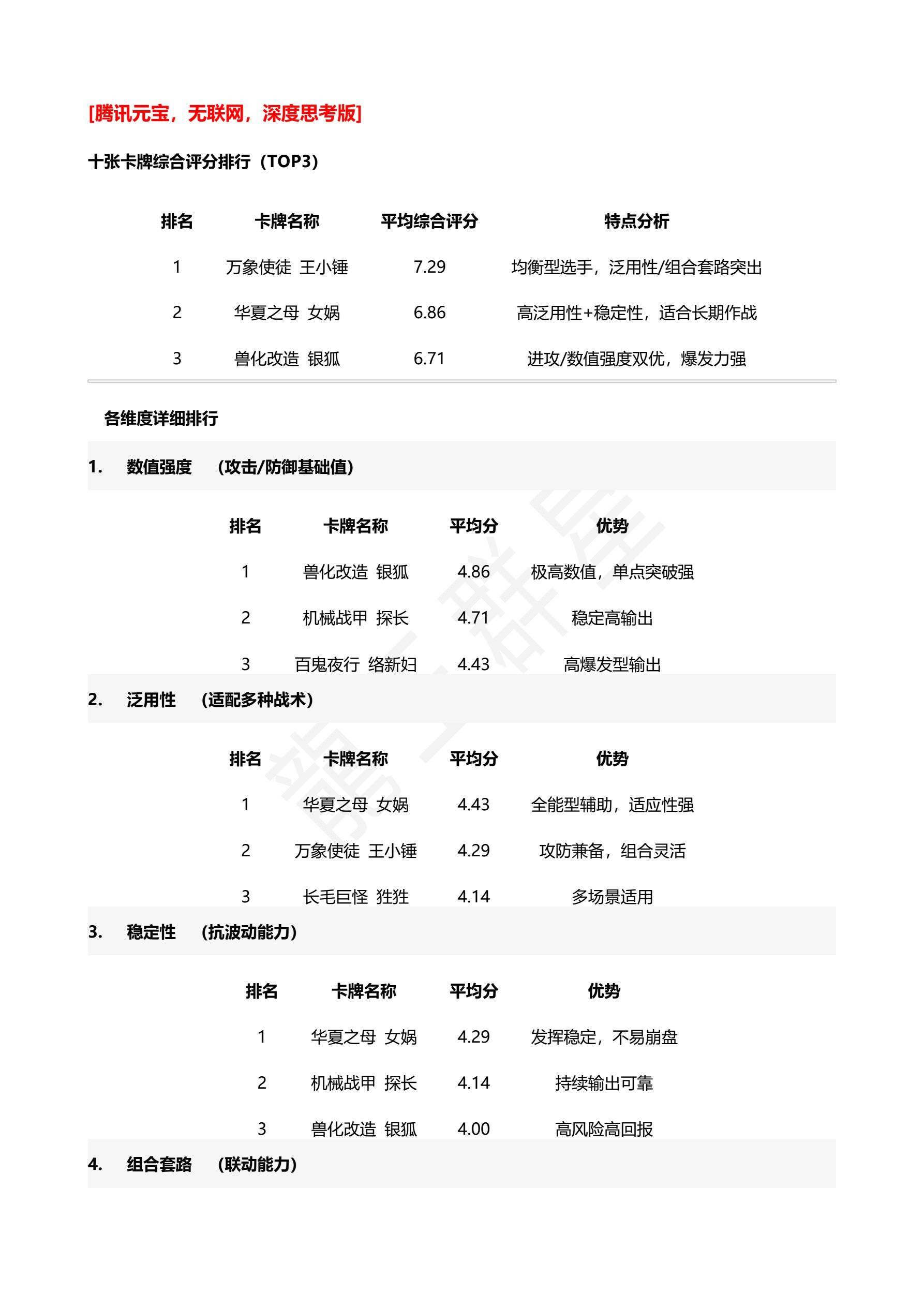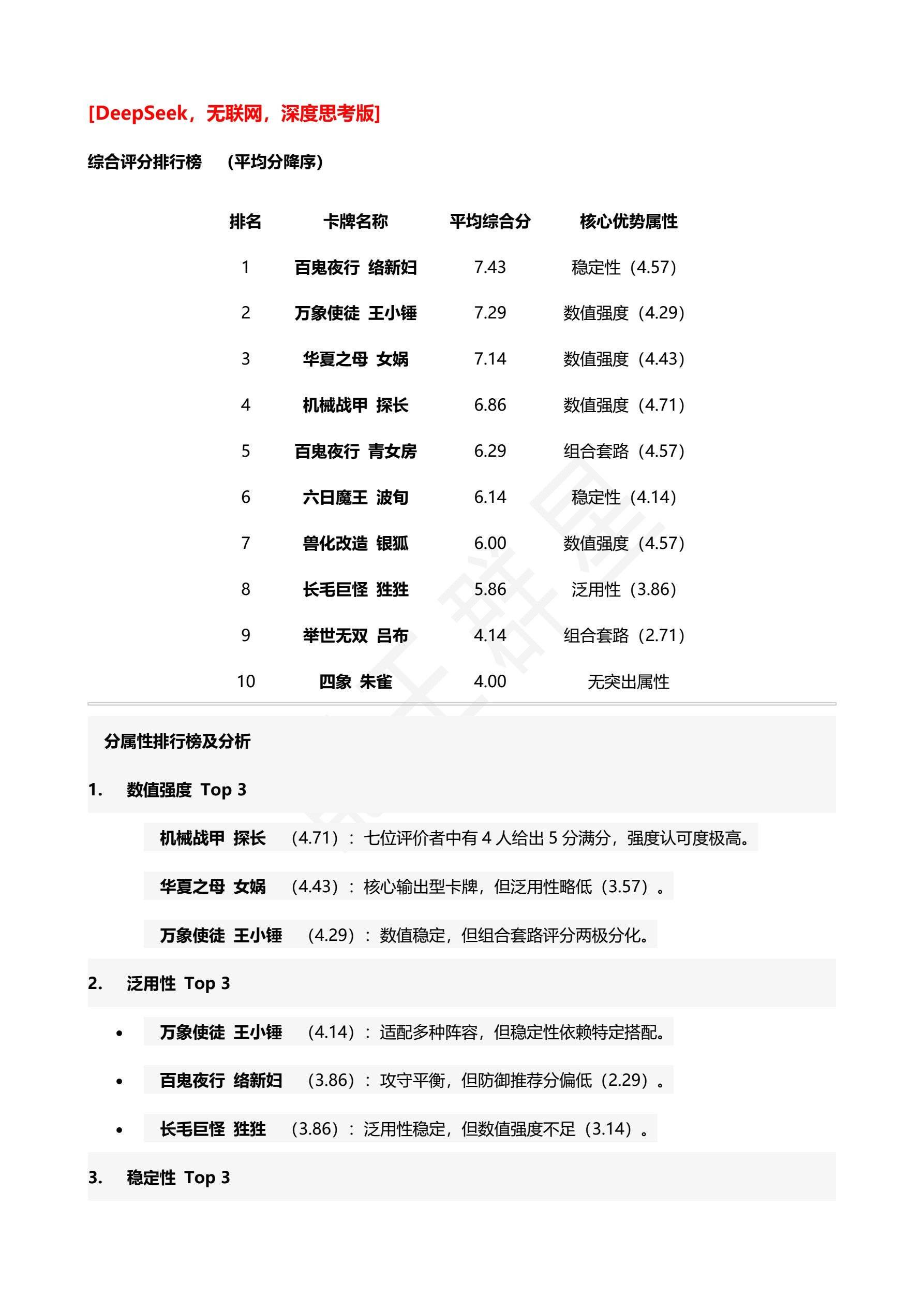 - 万象使徒 王小锤(3.00):依赖高爆发体系,卜兑给出4分满分。