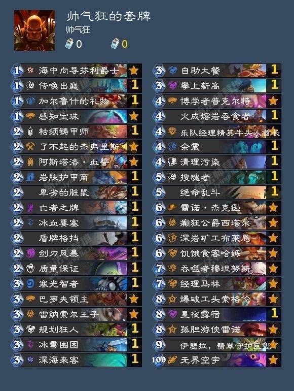 宇宙卡组比较随意,你想带什么随你,你开心就好。我只是想给喜欢在狂野玩战士的玩家一些思路,你们有什么思路也可以留在评论区反馈给我,我也希望得到好的建议完善卡组。