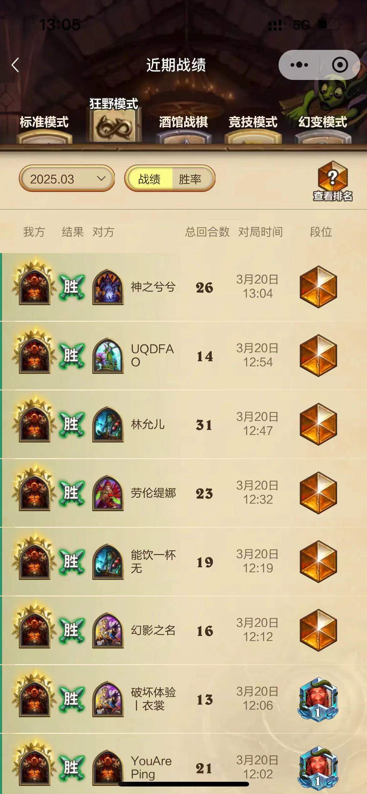 因为在等补丁加上工作忙,这个月一直没怎么玩,这是今天上传的战绩截图。(中间渡劫失败了,加上吃午饭,战绩有些断档)