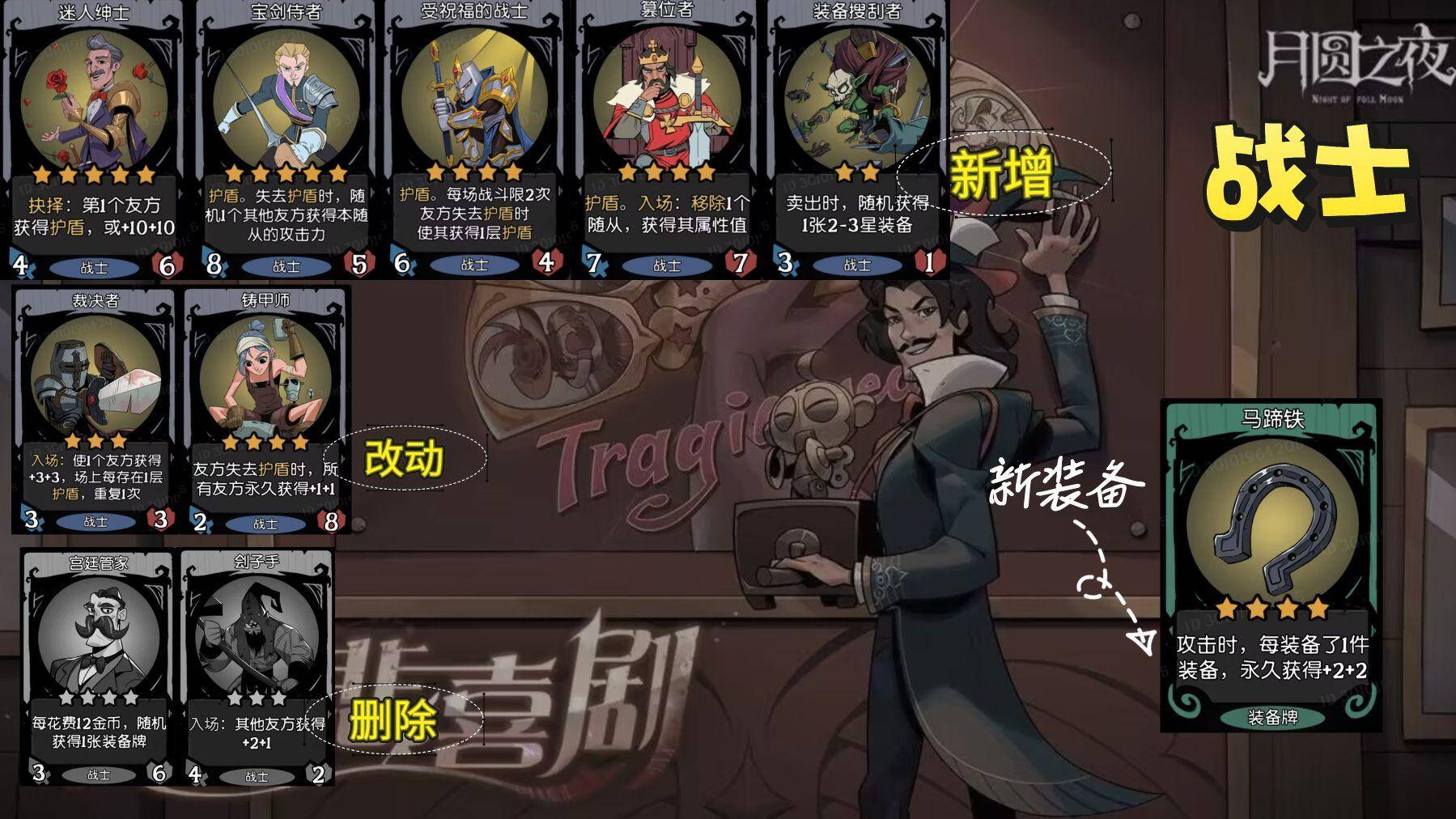 总结:战士整体变化不大,给盾战提速,四本就能成型挂机上本,还能给对手压力,后期还抬高了一点上限,但其实区别不大。宫廷管家删除也导致野牛更没落了,虽然野牛也没有太强过。最有潜力的就是迷人绅士,在有幽灵种族抉择翻倍的情况下能像当初太阳之子一样补充很多护盾。