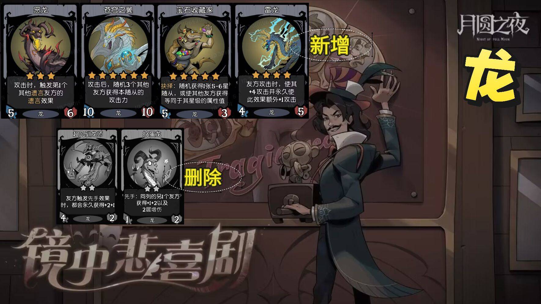 总结:总体来看龙的改动较少,删除了捣蛋龙和训龙师在一定程度上优化了二本卡池,毕竟前期的先手龙还是不太够看的,恶龙和苍穹之翼两张机制牌的出现给了龙族更多的可能性,雷龙毕竟是做加法,还是不太够看的。宝石收藏家也是龙族唯一的抉择词条,选身材还是补经济可灵活选择。