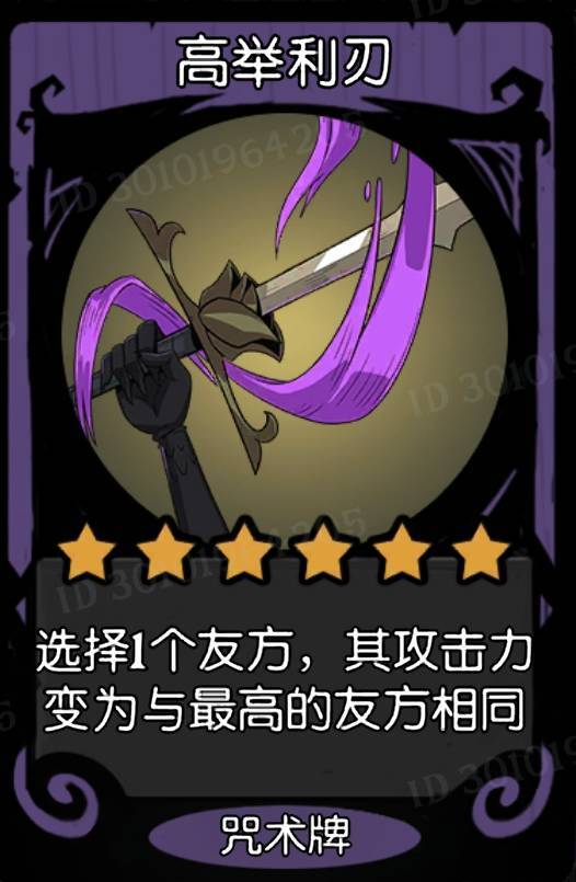 ②暴躁宝剑:暴躁领主攻击触发遗言给友方破盾再补盾,宝剑侍者给友方提供攻击力,弩手或者纵火者打伤害,铸甲师加全体身材,宝剑的作用其实就是加攻击力抬高一点上限,在六本拿到高举利刃这张咒术才推荐将前期的盾战核心换成宝剑侍者。