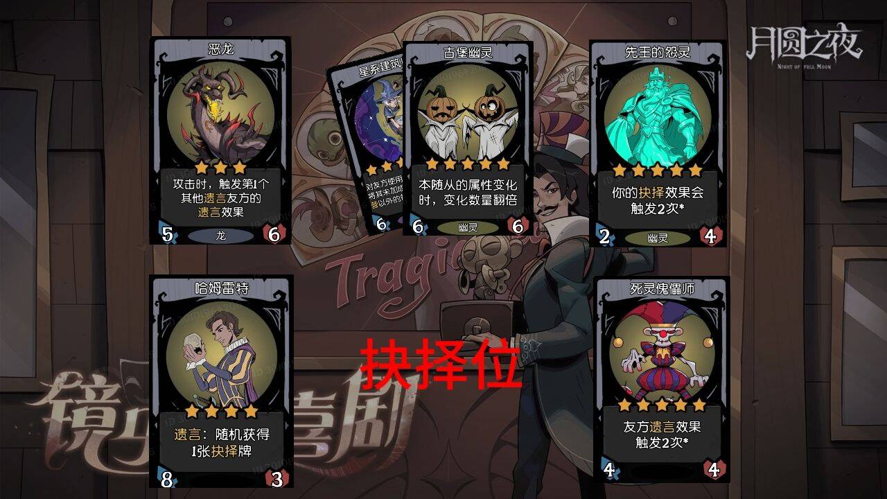 新增:①哈姆雷特:四本以下的抉择牌通常强度一般,所以实际战斗力偏弱。需要前期能靠恶龙触发效果或者后期吃到鼠王倍率贪一两轮抉择牌,依靠先王的怨灵来提供战力和经济再进行转型。没幽灵基本不抓
