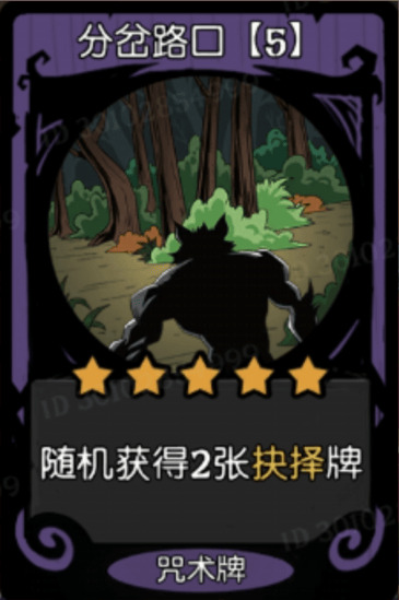 分岔路口可以随机获得两张抉择牌,他还有一个六星的版本,能够随机获得三张,因为抉择体系在新版本,他的强度不是特别高,他不能够作为主流体系来玩,所以这两个咒术的强度也就跟着下降。