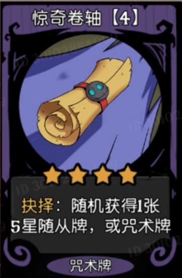 惊奇卷轴,他可以抉择随机获得一个5星随从或者咒术牌,他一般是配合琴圣,让你抉择牌能够同时获得两种效果的时候他比较赚,如果只选一个的话,大部分时间他都随机一个垃圾给你。