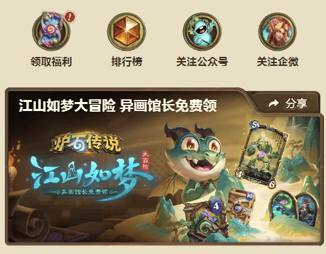 别忘记登录炉石传说小程序可以免费领取“江山如梦异画馆长”!