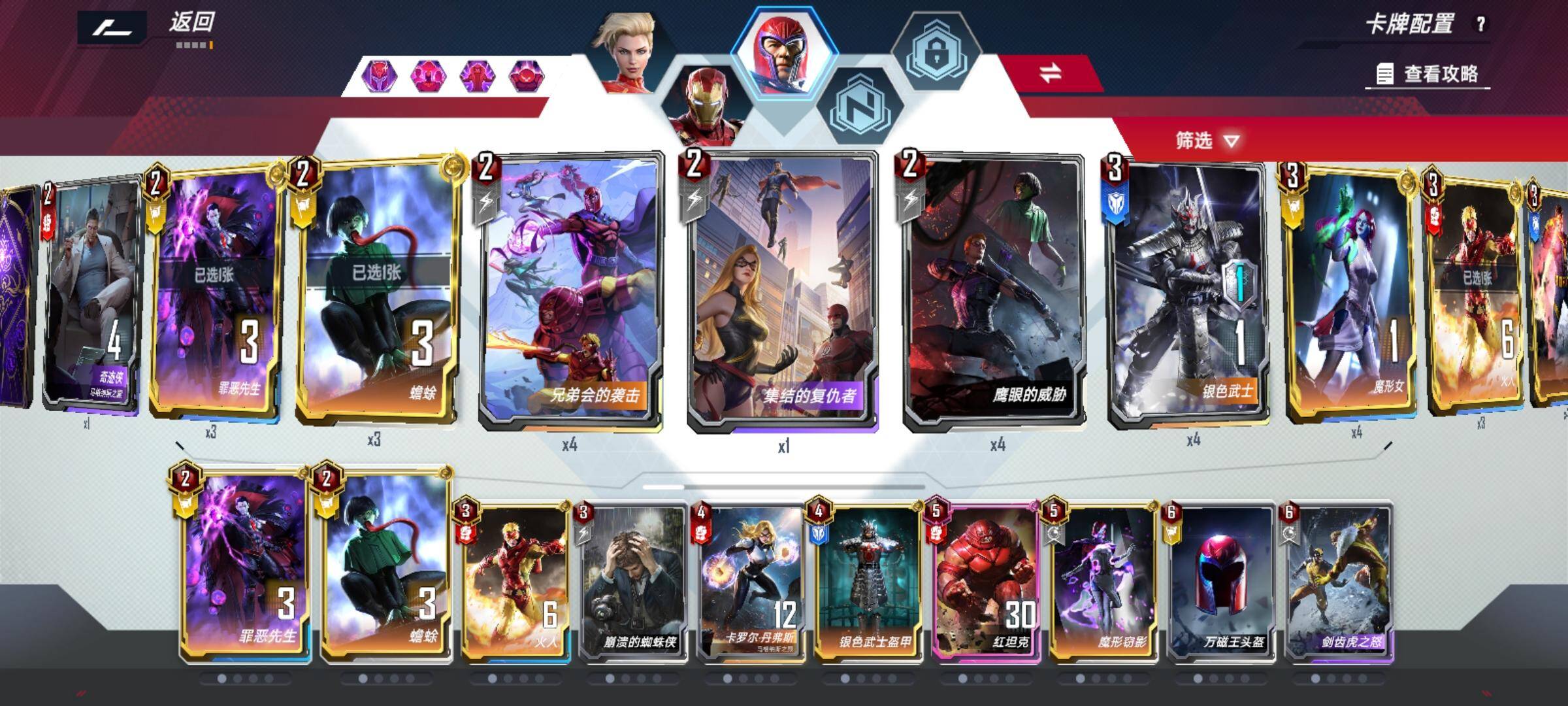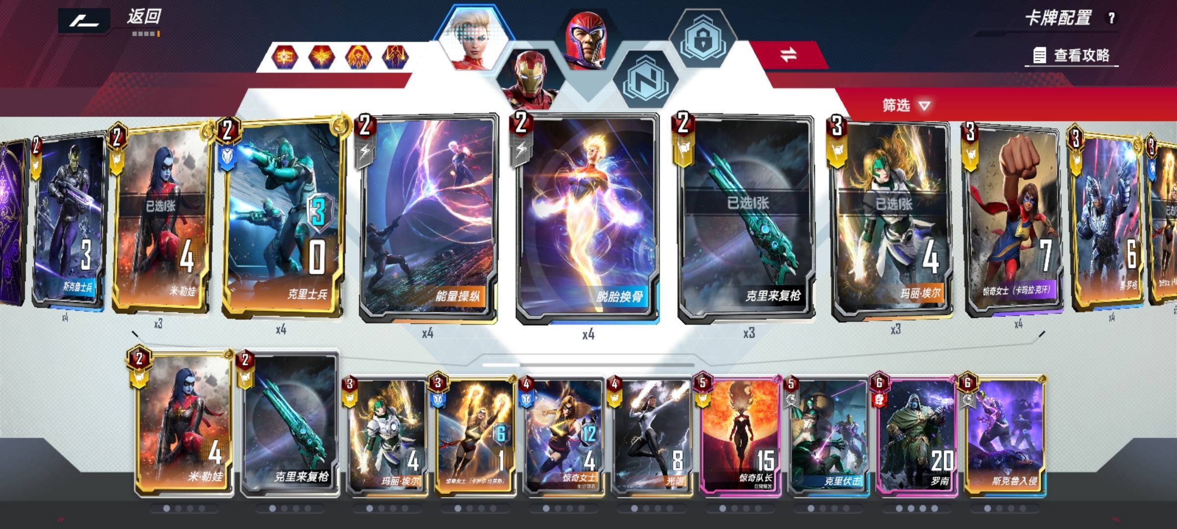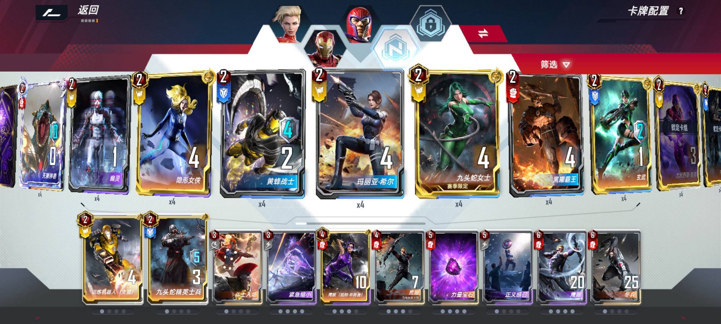 1-3回合拿战力,凑玛丽链接或猎鹰链接稳血,有崩溃的蜘蛛侠可以拿下来。