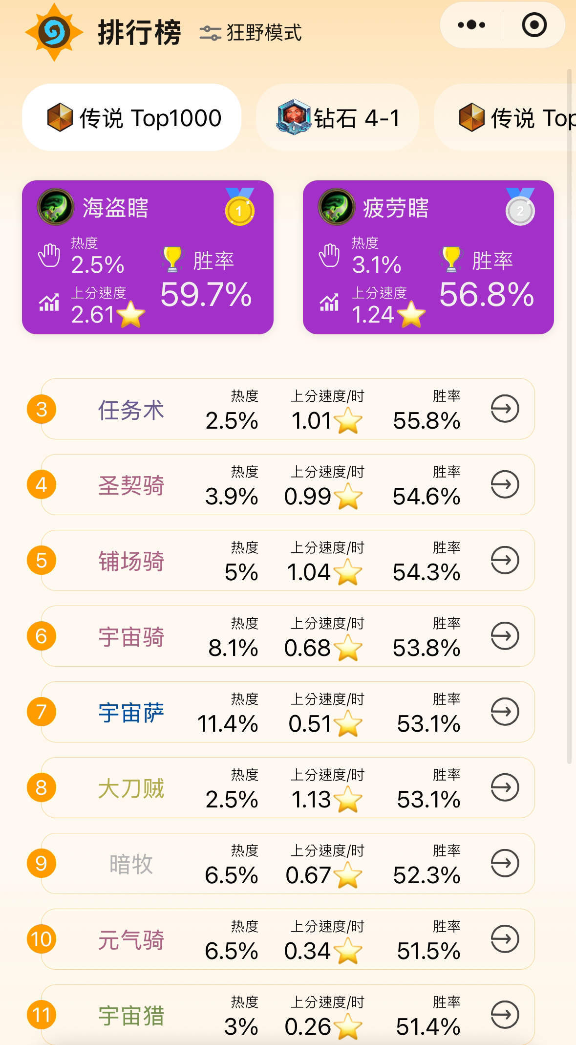 驴子网 03/28 前一千分段 狂野数据 (微信小程序HS卡牌大师):