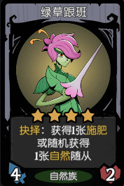 绿草跟班是整个自然抉择流的核心,先王的抉择翻倍能使绿草跟班提供三张施肥,施肥打给蘑菇国王,如果金蘑菇国王金泉水加上怀表一张施肥能给八张自然牌,其中还能给到绿草跟班,绿草跟班再提供施肥,施肥越刷越多,刷到自己能明显感觉到手牌看不清就先打几张给甘霖。其中自然牌有三连开出来奖券有魔镜可以先留在商店里,等到绿草跟班可以三连再拿下来收益最大化,中后期过渡时就可以空两个格子打绿草跟班再三连收益最大化,回合将要结束时最好上小蘑菇补格子吃甘霖的buff,有孢子女巫点金还能收益翻倍。操作时的细节补充:打施肥时蘑菇国王和甘霖放在后排节省时间,不必要的成长就不要贴,蘑菇国王和甘霖也先不要带其他装备方便切换怀表。