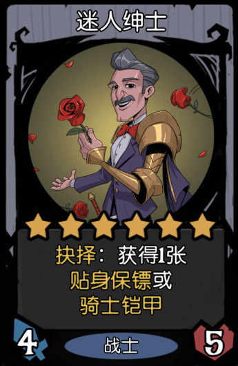 战士:最重要的核心就是迷人绅士,版本更新后还调到了6星,三连更容易获得,先王来的早全体十几层盾没有问题,需要注意一个细节,金先王配合迷人绅士给三张贴身保镖就直接三连了也是一层护盾,这时需要我们手里卡一张魔镜,这样就能保证打迷人绅士先用魔镜金了贴身保镖,然后还能多一张白的贴身保镖,这样就相当于多了一层护盾,提升我们护盾数量的增长效率,尽量再前期有两个格子去刷抉择的情况下打两张迷人绅士再三连多攒护盾去贴,配合星系建筑师全体好多层护盾。