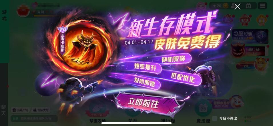 波拉哩迎来一场史无前例的冒险盛宴!4月1日,《球球大作战》多重新内容强势登场,S4赛季「黑洞军团再临」开启,全新生存玩法「魔王再临」迎战魔王卡奥斯。同步推出「通行证:黑洞军团再临」、「黑洞征途计划」、「超大奇妙宝箱上新」等精彩活动。无论是生存挑战的硬核玩家,还是专心收集的休闲球宝,都能在这场四月狂欢中找到属于自己的乐趣。