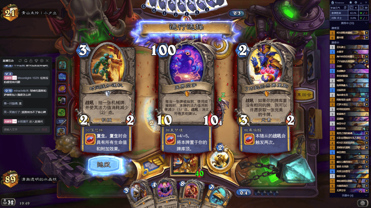 5、铜须、星空投影师、血望者和血誓并不一定要硬等组件,当打出卡牌对于节奏的帮助很大,直接打不要犹豫,这套卡组不缺斩杀手段,不要被公式固定住。
