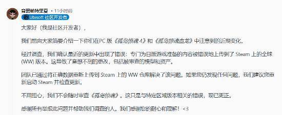 这名开发人员表示,该问题已经被修复,并承诺团队没有针对《孤岛惊魂4》进行和谐的计划。“如果您仍然发现错误,我们建议您重新启动Steam并检查更新。”
