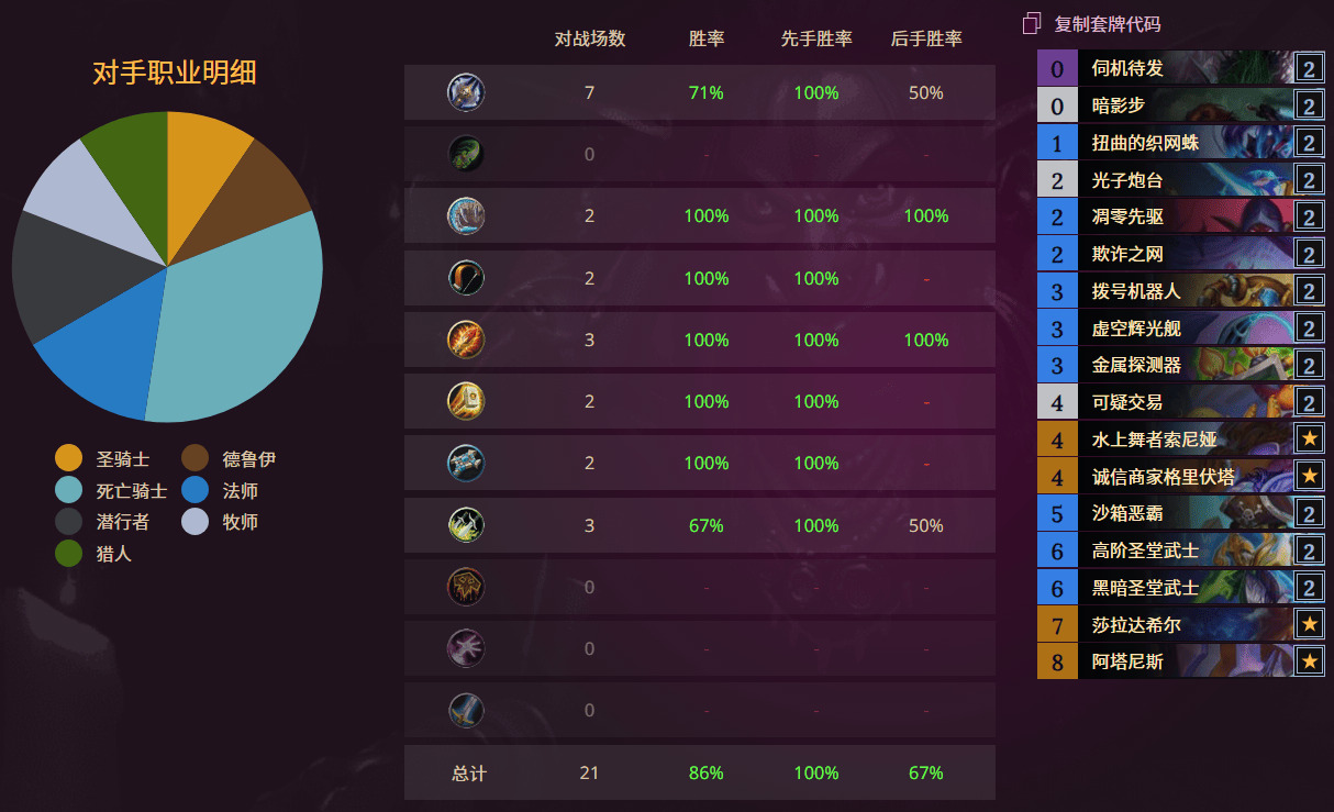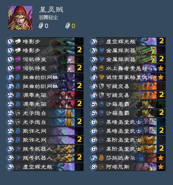最近用的一套星灵贼,从1000多名打到500名,只输了两把DK和一把内战。战绩如下: