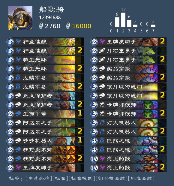 如果有11圣盾和光环法术,那么一费出法术二费站随从很顺滑,其他情况看自己理解;