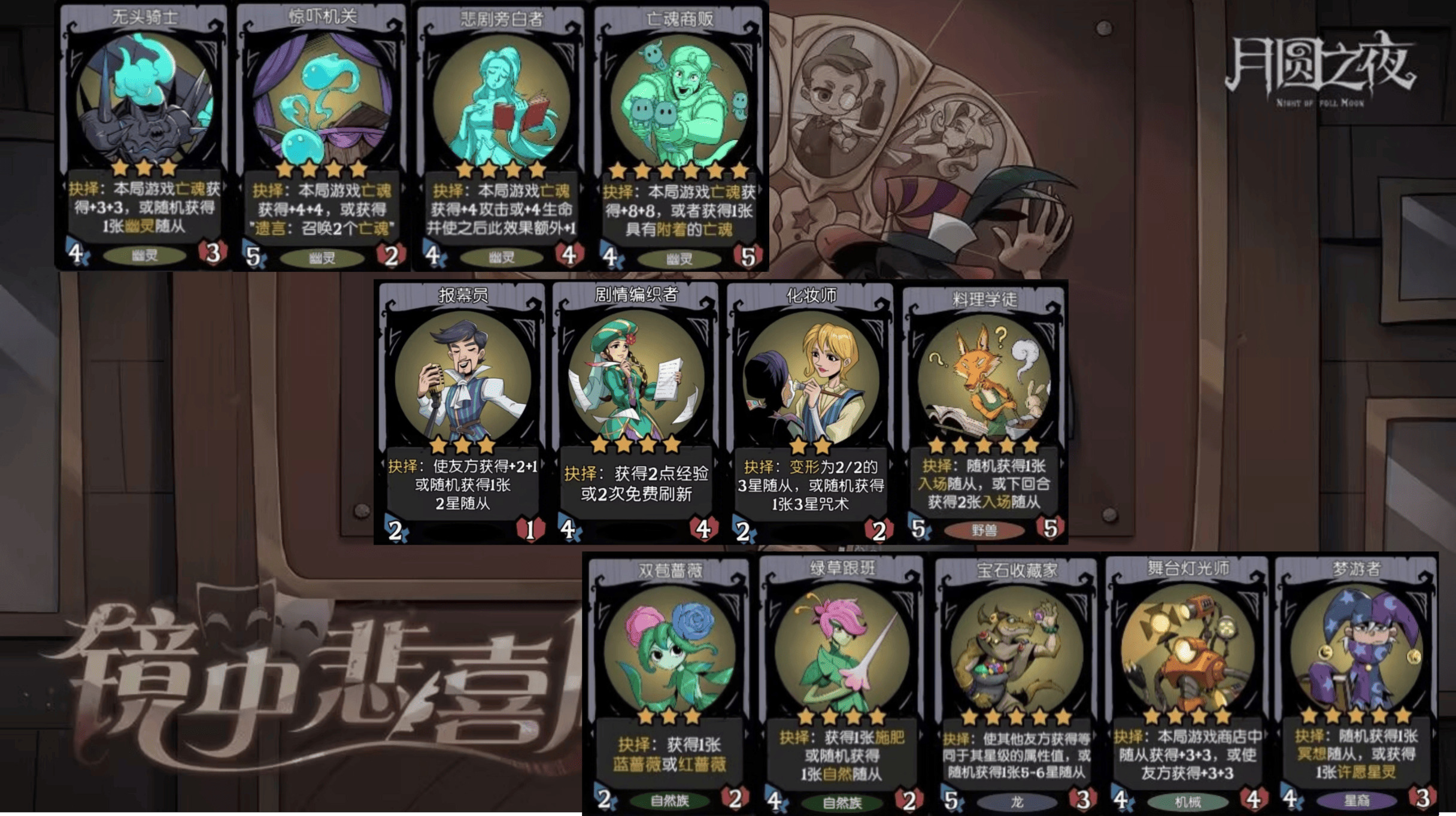 ③魅影:每回合可以免费刷新1次,并刷出三张抉择牌。在不能确定倒转的情况下场上留好魅影多拿经济型抉择牌,先将经济刷起来再卖魅影
