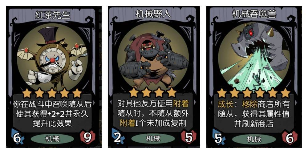新赛季机械种族新增的随从是最多的,整体流派玩法类型没有多大变化,大多得到了较大的增强。机械在本赛季新增了三个新随从,红茶先生是召唤流的核心随从,机械野人是附着流的核心随从,机械吞噬兽是商店流的核心随从。这其中以红茶先生为核心的召唤流得到的增强最多,下面我将一一介绍。
