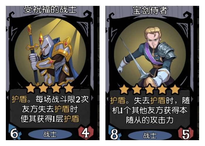 为什么盾战可以在赛季初这么强,在削弱后也有一定强度呢?其一在目前赛季盾战流派在中期的补盾难度降低了很多。因为受祝福的战士可以直接为带盾大哥补俩层盾,这既可以在中期让带盾大哥换掉对方好几个随从,又可以让盾弩手多射几箭。既提高了战力又提高了输出,盾战在中期几乎遇到就会掉血。第二是宝剑侍者的加入让盾战在后期有了发育大核。在后期我们重点发育宝剑侍者的身材,然后为其补盾,就可以暴涨全队的攻击力。这使得我们在面对很多大成阵容时都有一定概率将其击败。