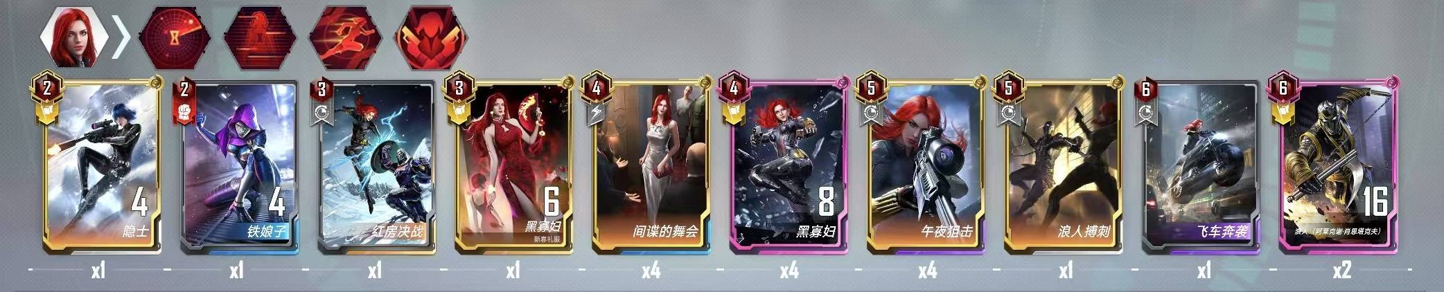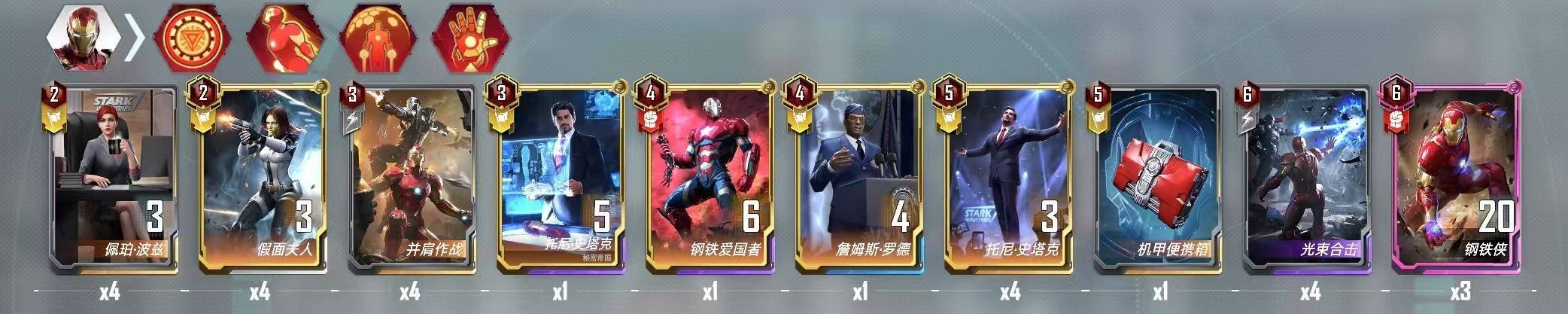 (iii)四星2费尽量碰五本,有托尼和彩虹传送;后期手上的复联牌别急着卖,碰出的六本牌是阵容的上限;