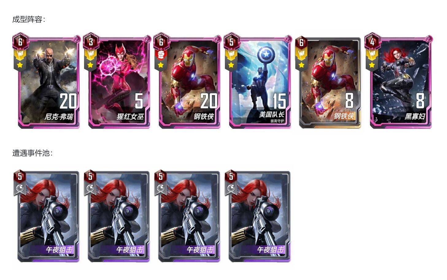 - 5费:狙击x4,凑数卡x1,不能选择角色卡,防止污染钢铁侠四败技能的五费卡池。