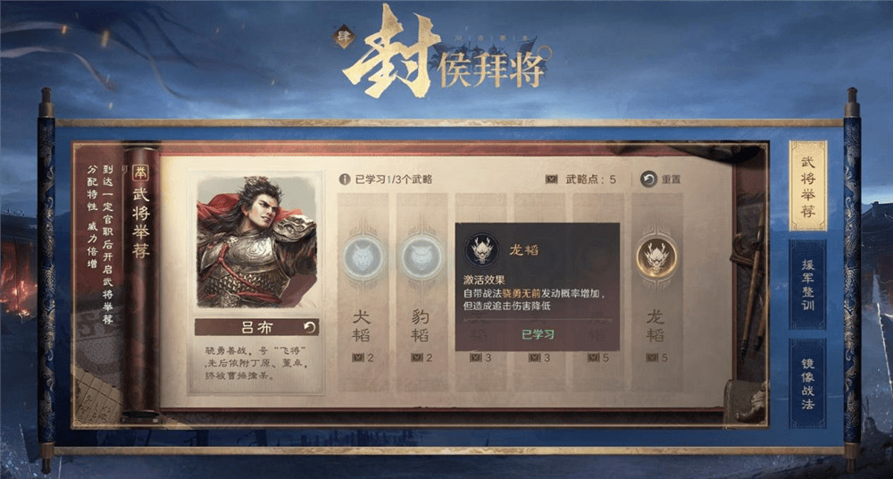 除了强大的官职效果,玩家到达一定官职后,可开启武将举荐,分配特性强大部队;还能开启援军整训,建立援军据点,加强后勤;而本赛季的镜像战法则同样与官职系统绑定,镜像战法系统可以逆转战法的影响属性和生效属性,颠覆传统SLG手游武将配队机制,打敌方大佬一个措手不及。