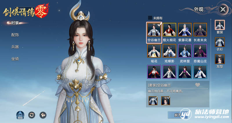 若说阵营专属外观展现的是江湖锋芒,那么外观「空谷幽兰(女)」/「烟茶清昼(男)」则完美诠释了何为“侠骨柔肠”。作为《剑侠情缘·零》经典插画的C位主角,这套时装以“兰生幽谷”和“晨昼清茶”为灵感,将东方古典雅韵与武侠飘逸气质融为一体。