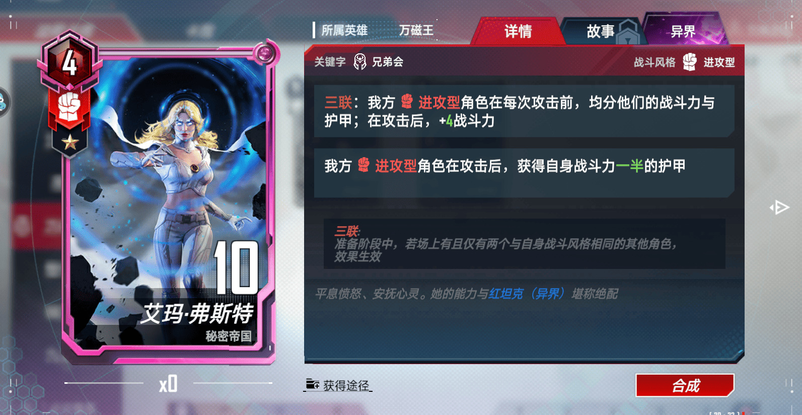 另外,在镭射眼凤凰女链接中,这张卡配合三狼觉醒后,还可以被异界心灵感应回收后直接获得x战警关键卡,运气好的话,甚至三回合都可能让镭射眼链接成型。